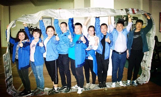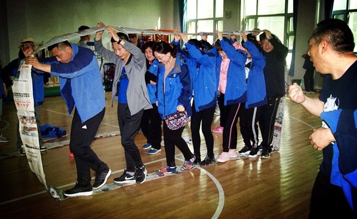 每個隊用提供的材料將報紙圍成一個可以行進(jìn)的履帶式的環(huán),要求本組所有成員在規(guī)則要求下走完規(guī)定的路程,以最快到達(dá)終點(diǎn)的組為優(yōu)勝。